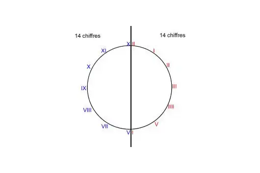 而且表盘从中分开,一边各14个数字。