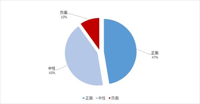 监测时段内,全网有关蜜雪冰城的信息内容主要以正面为主,占47.4%,其次为中性,占42.8%,负面信息较少,占9.8%。