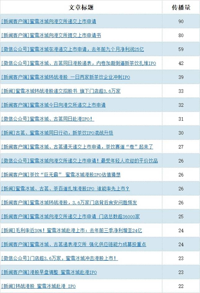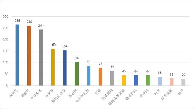 通过统计分析,有关“蜜雪冰城”的舆情量主要来源于“网易号”网站(共266条,占10.1%)。其次为“搜狐号”网站(共260条,占9.9%)。和“今日头条”网站(共244条,占 9.3%)。