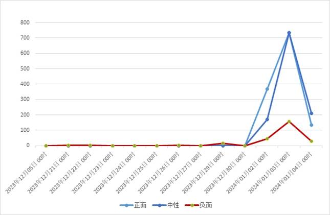 从12月05日00时到01月04日15时,全网有关“蜜雪冰城”的舆情数据为2,621条,从整体上看,舆情主要集中在“新闻客户端”平台,“新闻客户端”平台舆情量共1107条,占总量的42.2%,其次为“新闻”平台(共1048条,占40%)以及“视频”(共236条,占9%);信息内容主要以“正面”为主,占47.4%。
