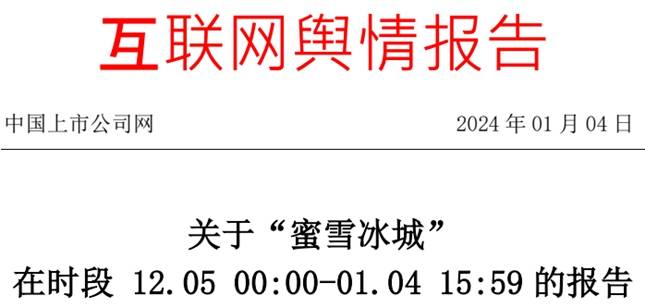 从12月05日至01月04日,全网有关“蜜雪冰城”的舆情总量为2621条,其中,舆情最高峰出现在01月03日,共1627条信息。