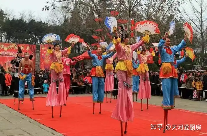 踩高跷,是民间盛行的一种群众性技艺表演。