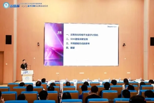 会上,南方科技大学校长薛其坤院士为“五岳杯”作了视频致辞。孙少陵、文凯博士现场对广大参赛选手作了热情洋溢的致辞。其后,玻色量子市场总监袁为、玻色量子技术专家曹崇育为“五岳杯”作了精彩宣讲,分别从本次大赛等赛程赛制、量子计算基础知识及应用场景、参赛建模工具等角度进行了详细介绍。值得注意的是,此次参赛获胜的优秀队伍成员,将获得中国移动云能力中心算法岗位的面试直通车的机会!