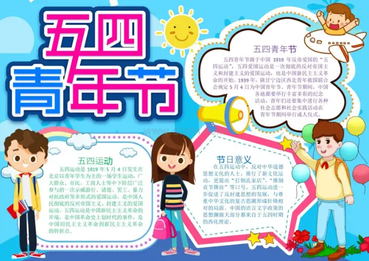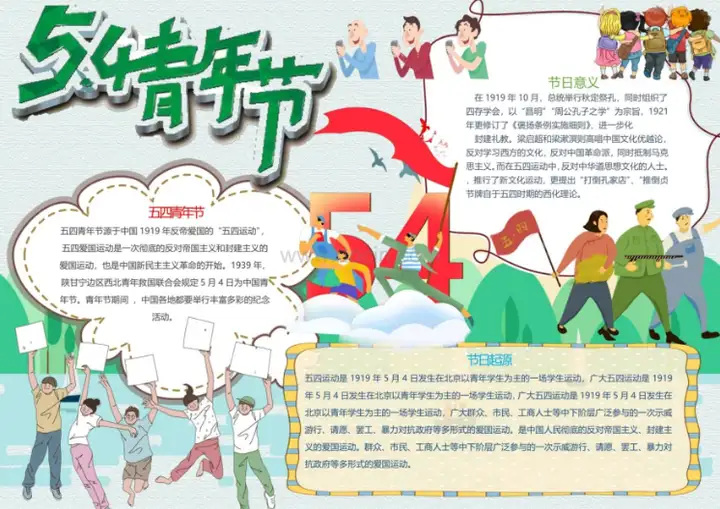 2.卡通五四青年节日的意义抄报word模板