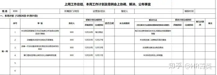1,周计划表,要素包含:每天的任务,时间限制,解决方案等等