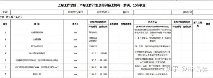 比如下面这个电商工作人员的工作计划表,就非常有参考价值: