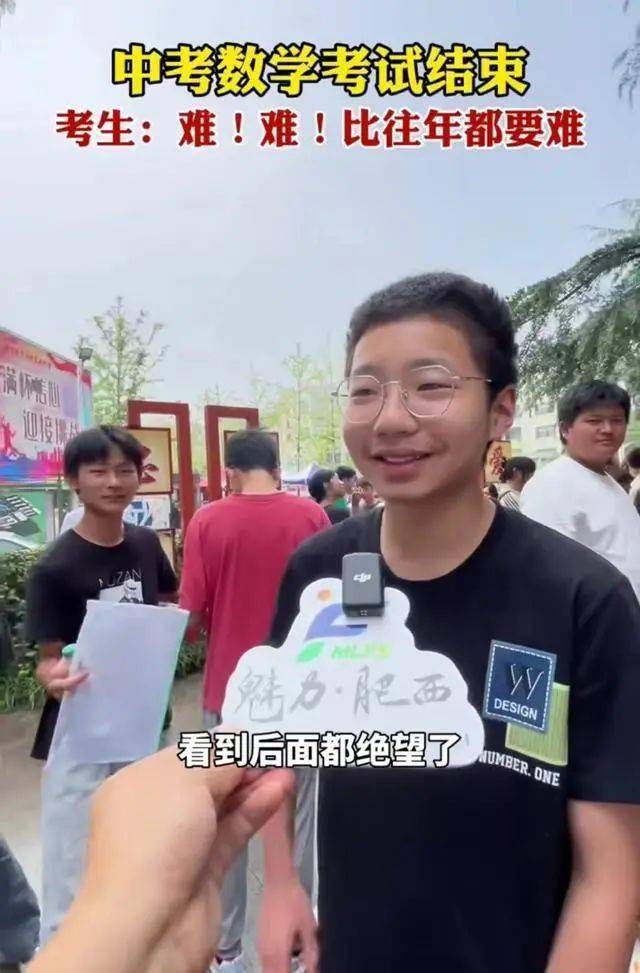 在合肥某中考考场外,有媒体对考生进行了随机采访,几乎所有的考生都认为数学难度太大,尤其是后面的题目,看到就绝望了。