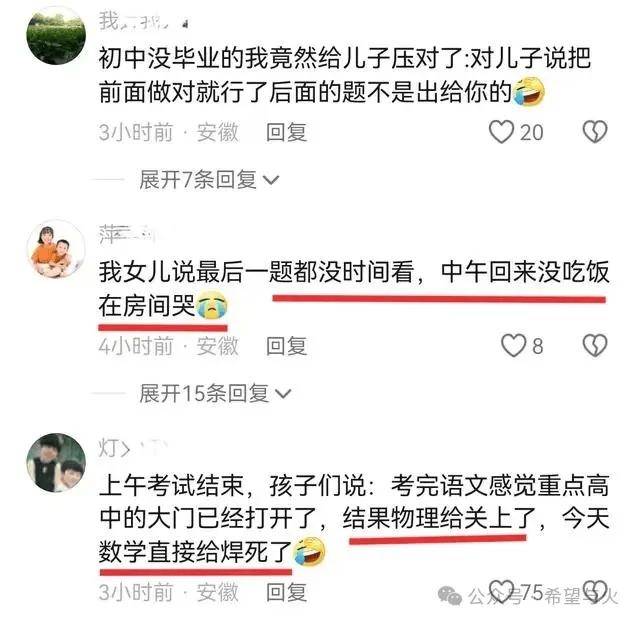所以这次安徽中考数学卷子难度确实偏难,并且作者本人也接收到了部分家长给我的反馈,自己家的孩子数学考完之后就哭了,更有甚者直接说数学把通往高中的门给焊死了