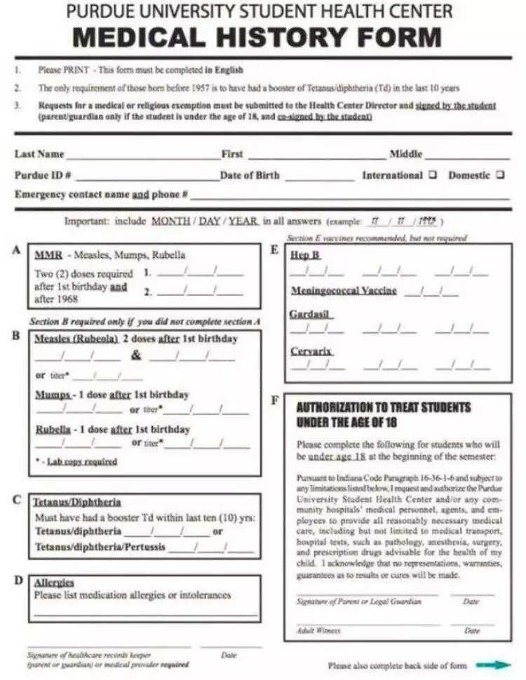 图:普渡大学体检表格