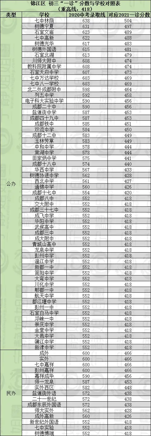 一分一校!各区初三“一诊”分数可选高中预估!(含最全对照表)
