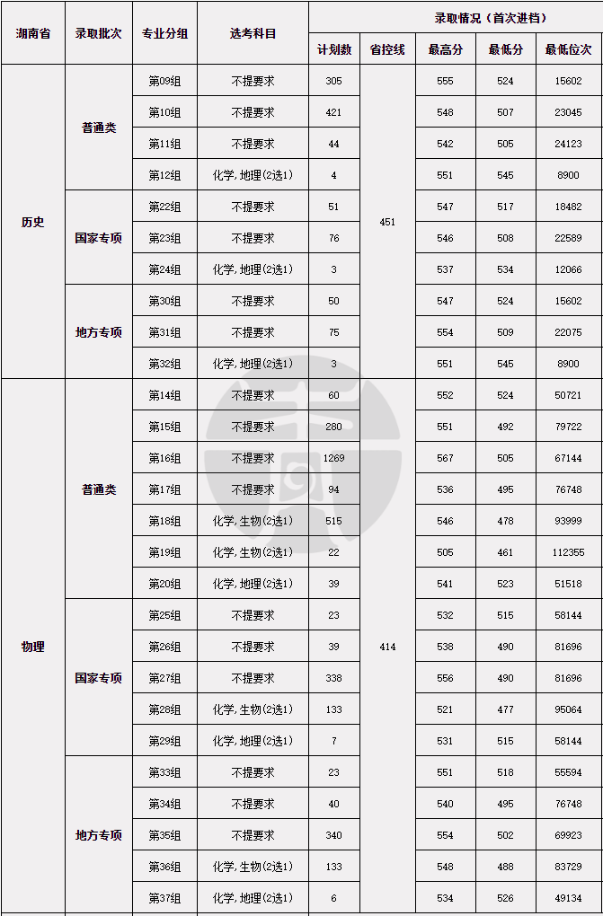2022年普通本专科录取统计(湖南省)