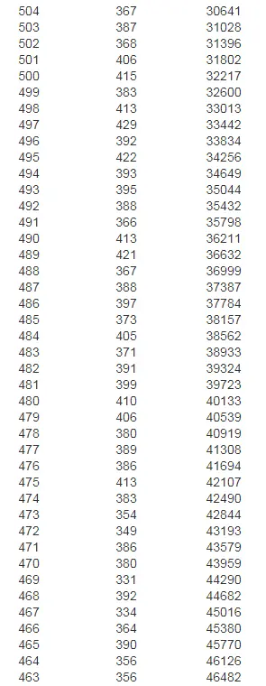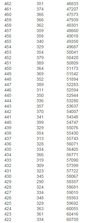 中考分数档位表