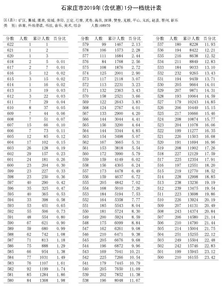 及一分一档统计表陆续公布