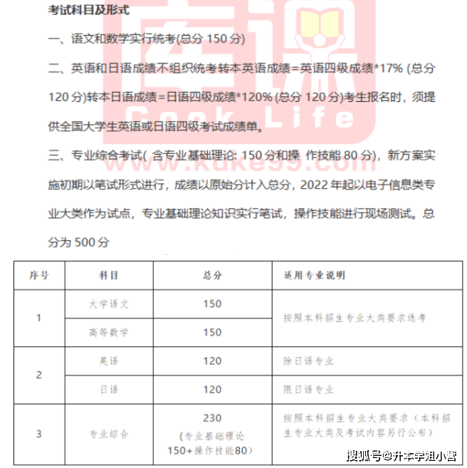1.公共基础课不分学科专业,所有考生统一考试“政治+英语+信息技术”3门课程的综合卷,分值300分。