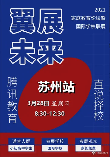 2021年3月28日春季全国国际巡展苏州站将名校云集,机会难得。正在为择校苦恼的家长,请千万不要错过!