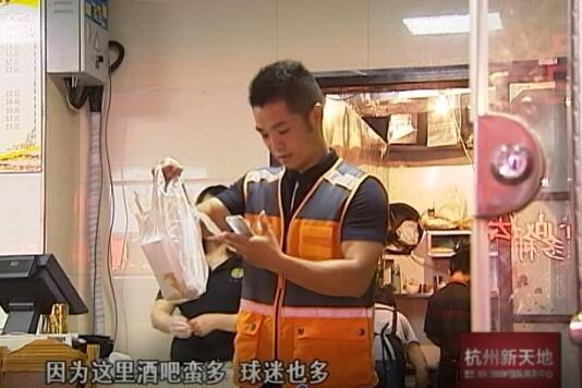 “这附近酒吧很多么,来看球的人也多,尤其像今晚这种球赛这么精彩,大家看得起劲,外卖自然点的也多”。记者跟着周园将单子送到酒吧,恰逢姆巴佩进球,法国队3-2将比分反超,烧烤的送达,正好给法国球迷们助了兴。 与酒吧内人群的雀跃相反,周园安静地站在角落看着手机。接连传来的派单声,让他无暇关心赛事,一个进球的时间,订单又多了好几笔。“看来,进球了,法国球迷要以小龙虾庆祝,阿根廷球迷则以小龙虾泄愤了。”周园笑着说。“祝你们看球开心,吃得满意。”跟客户挥挥手打了个招呼,周园继续着自己的配送之路。