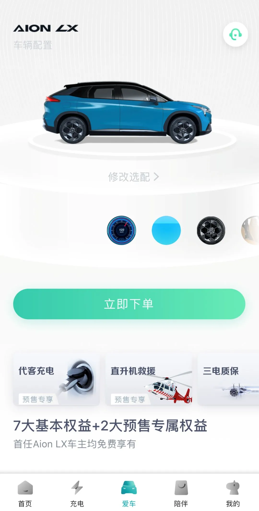 Aion LX首任车主在享有免费送桩、终身免费数据流量等6大终身免费权益基础上,还可享包含三电终身免费质保“一键全包”尊贵的专享服务。同时预售期下订的车主,还将获得首年6次免费代客充电服务和紧急场景终身直升机免费救援“双重大礼包”。除此以外,广汽新能源还提供了丰富实惠的金融解决方案和电池租赁方案,全面消除用户购车的后顾之忧。