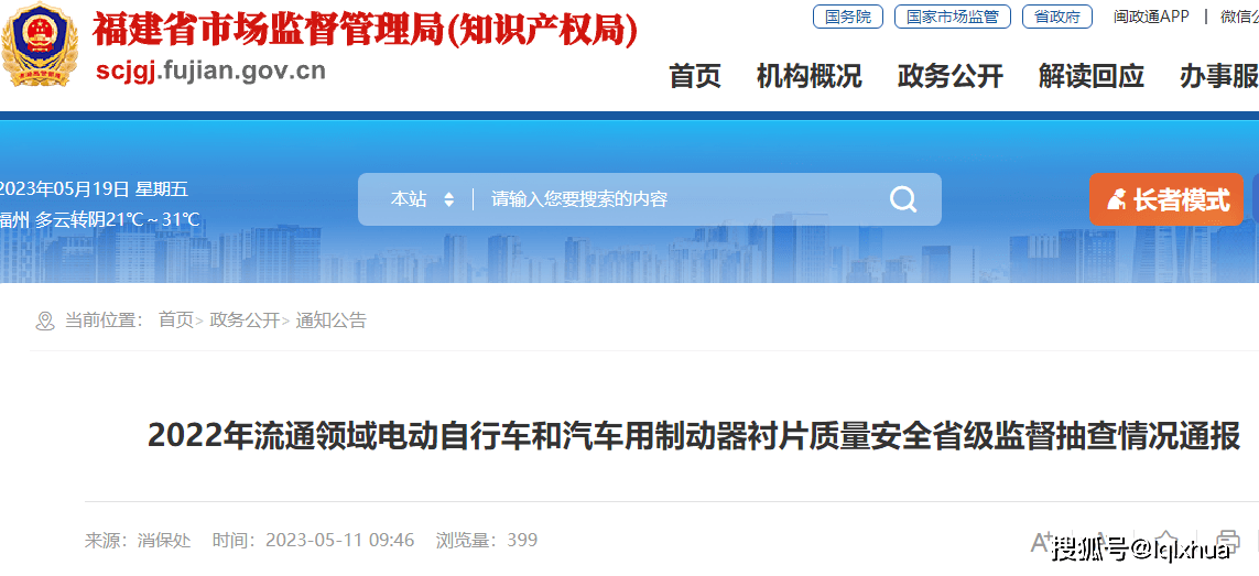 同时在2023年5月11日,福建省市场监督管理局也发布了2022年电动自行车监督抽查情况的通报,其中65家企业销售的80批次产品进行抽查,其中有63个批次合格。