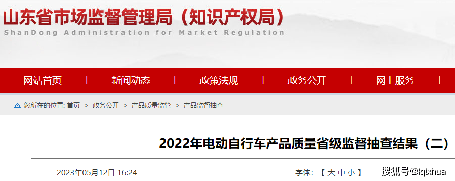 2023年5月12日,山东省市场监督管理局发布了2022年第3批升级监督抽查结果,共抽查了53个批次的电动自行车,其中9家销售的10个批次不符合相关标准要求。