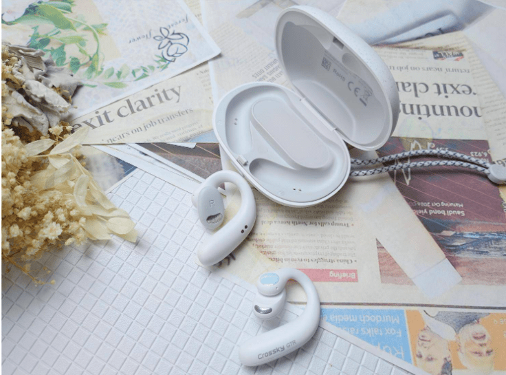 耳机舱是独特的类鹅卵石设计,圆润可爱,耳机主体采用开放式悬挂式耳机,也就是我们常说的挂耳式设计,在连接的中部挂耳部分,则选用了人机工程学设计,以人耳轮廓形状为基础,结合力学原理,能够实现耳机完美贴合耳廓,主体发声部分采用自研无人机旋翼形态转轴,采用了最新的蓝牙5.3技术,有着很高的稳定性和超低延迟,同时蓝牙5.3也具备更低功耗的特性,这也使得单耳支持6小时的使用续航,前腔可自由旋转90°,可根据使用需求自由调节佩戴角度,同时有效分散耳廓佩戴压力,在保证佩戴稳固不脱落的同时也不会出现长期佩戴耳朵疼痛的现象。