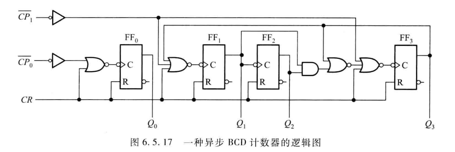 如果在该电路基础上增加一级触发器,便可构成异步 BCD 计数器,如图6.5.17所示。