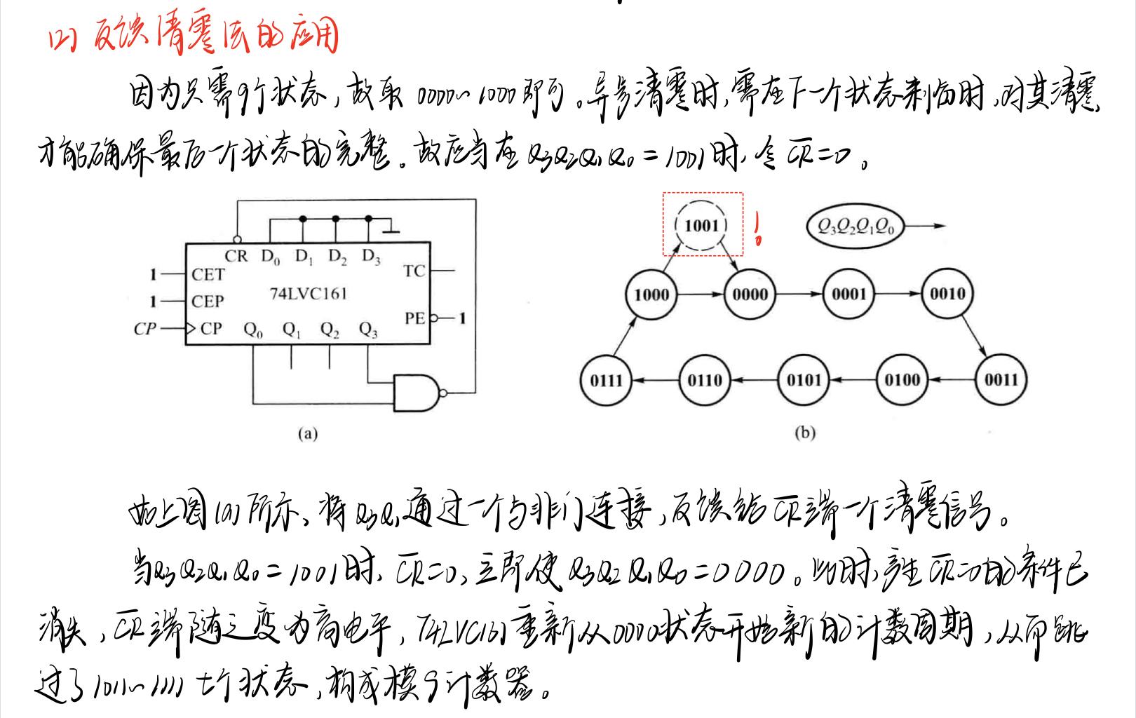 于是,电路成为模4计数器。图 6.5.22(c)所示为在4个 CP 脉冲作用下的波形。