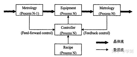 RtR是在生产运行之间修改配方参数以提高加工性能的技术。 “批量”可以是一批,一批或单个晶片。在串行处理中,此方法仅可在两次测量之间应用。Run-to-Run control是一种离散式控制,经过上一站的量测设备后,目前晶体进入本站的同时,上一站的量测结果传送给本站的控制器,作为控制器调整本站本次制程配方的依据,这种控制称为前馈控制(Feed forward);之前的晶体经过本站的量测设备后,当目前晶体进入本站的同时,本站以之前的量测结果传送回本站的控制器,供控制器作为本站本次制程配方的调整依据,这种控制称为回馈控制(Feed back)。前馈控制利用量测结果告知控制器实际的制程起点,而回馈控制利用量测结果告知控制器实际的制程终点。