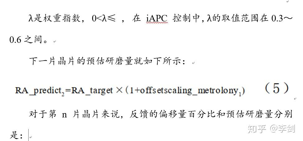 在 CMP 工艺控制中, 当计算系统收到第一片晶片的测量值后,就可以计算该片晶片的研磨量偏移值:
