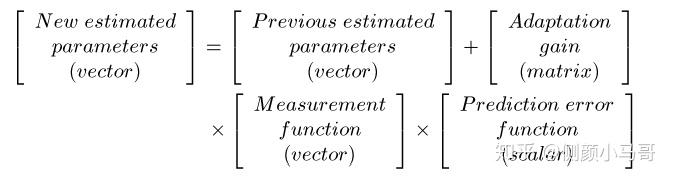既然是这种结构,我所了解的常见的参数估计器可利用如下方法构成:递推最小二乘法(RLS)、快速仿射投影算法(FAP)、最小均方误差(MSE)、卡尔曼滤波(KF)、扩展卡尔曼滤波(EKF)。
