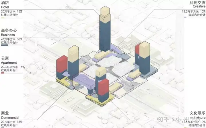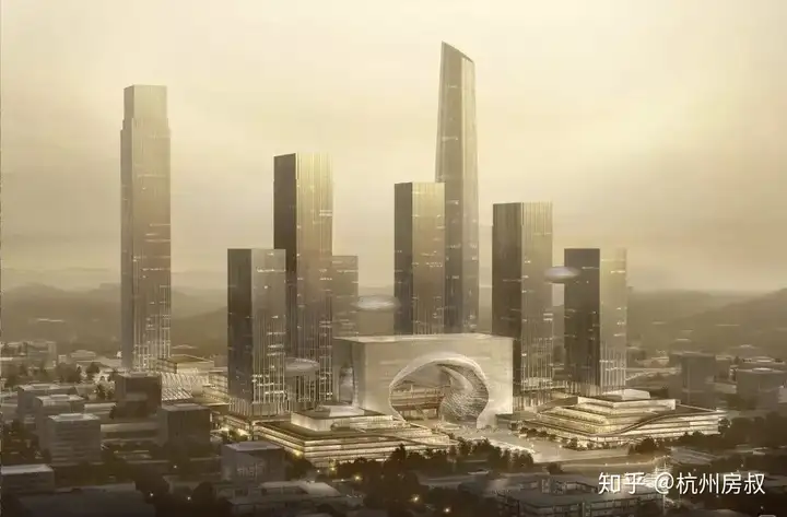 19年下半年,杭州西站规划效果图正式对外披露,第一次看到杭州西站效果图,我就被其震撼到了,四角多幢高楼不仅让杭州的摩天梦得到释放,最高楼更是近400m,建成之后有望成为杭州第一高楼,成为城市新地标。